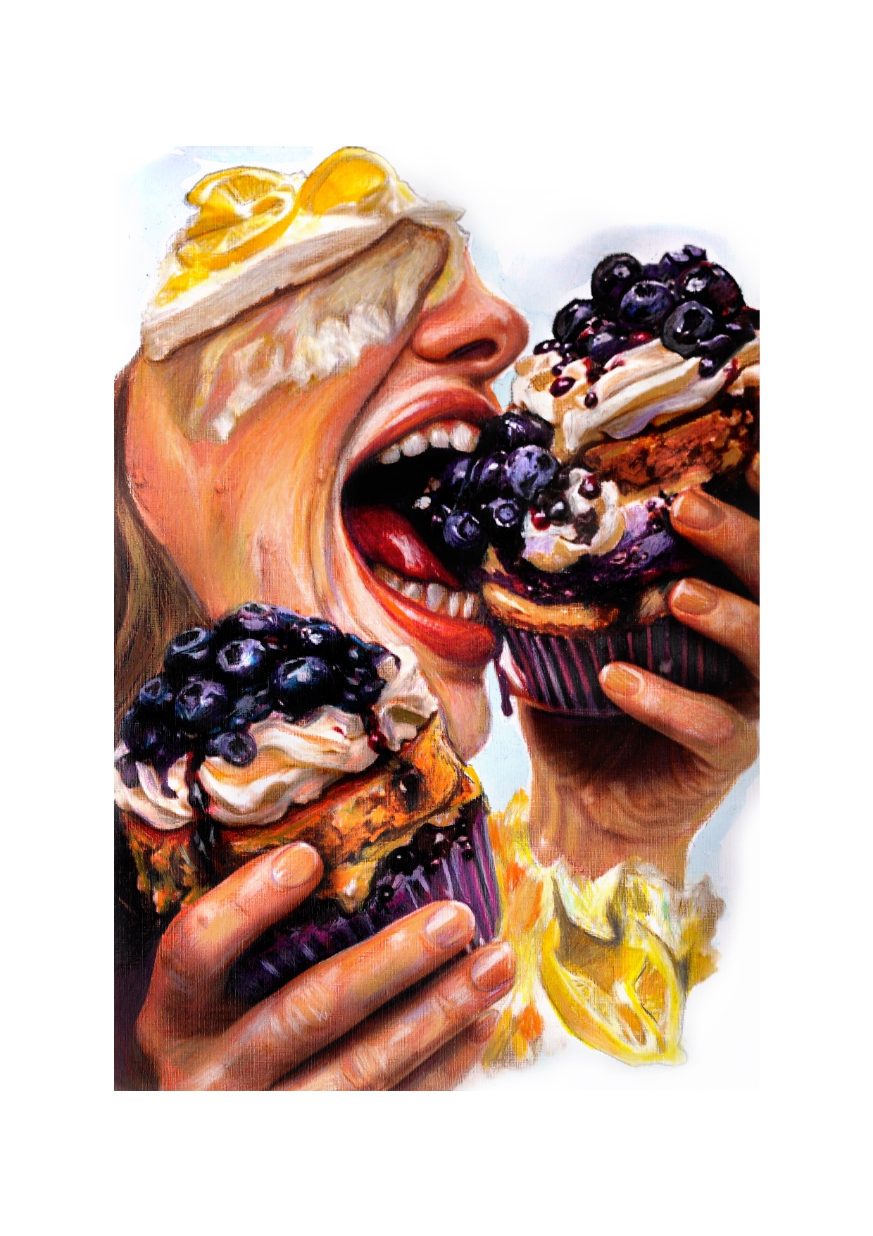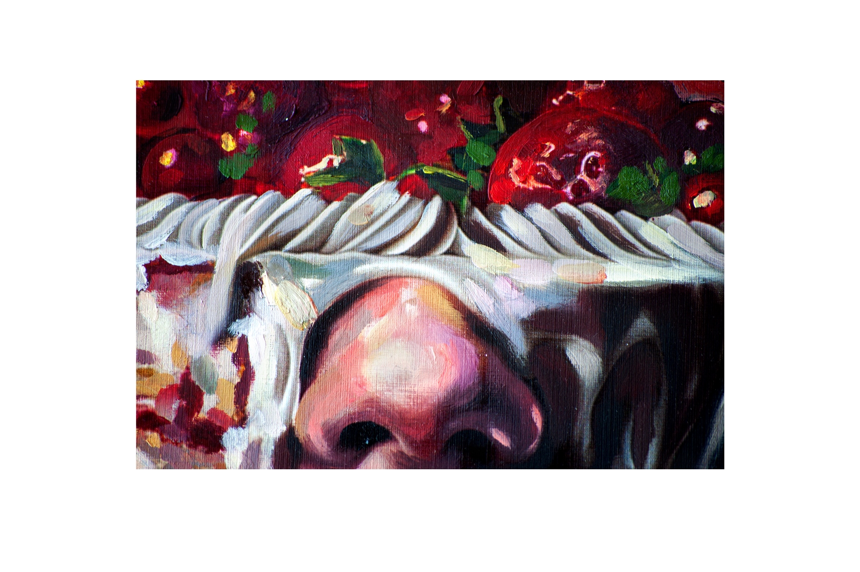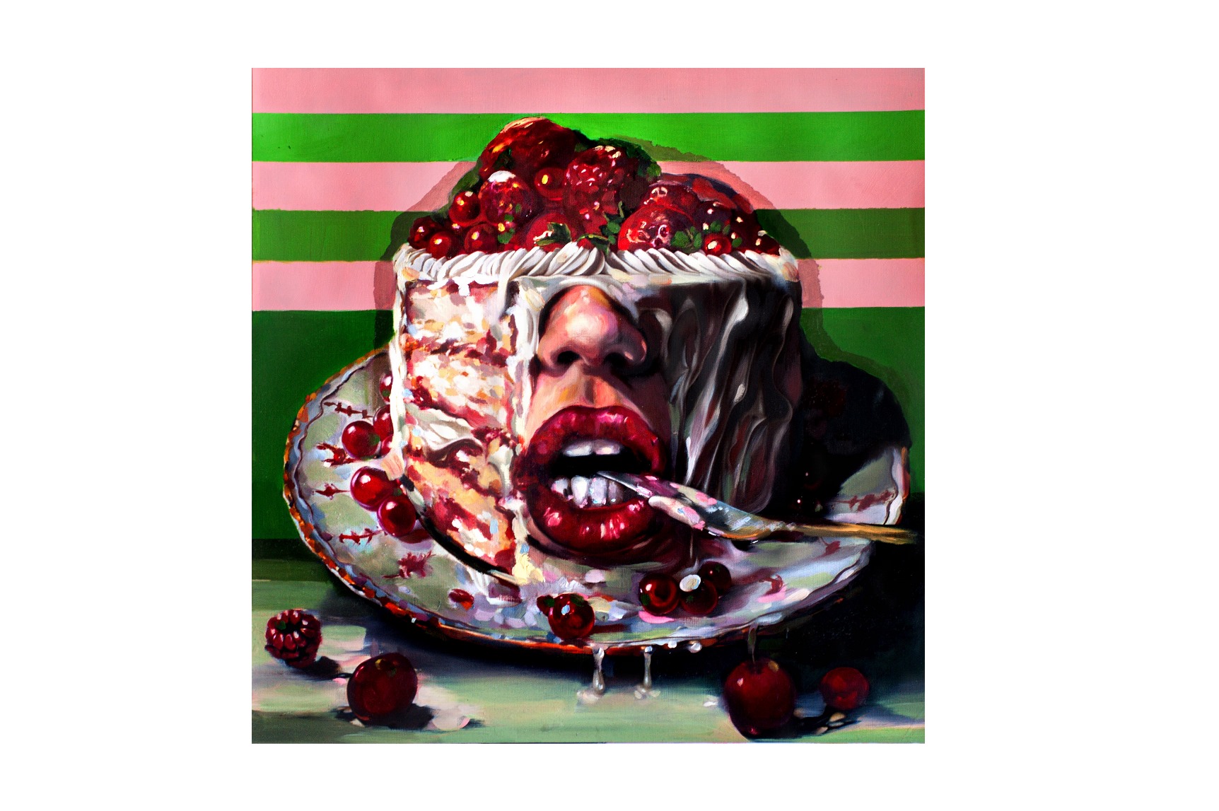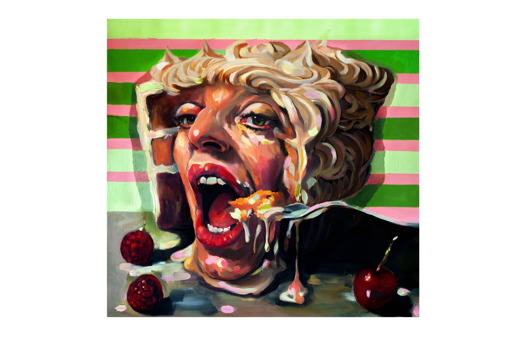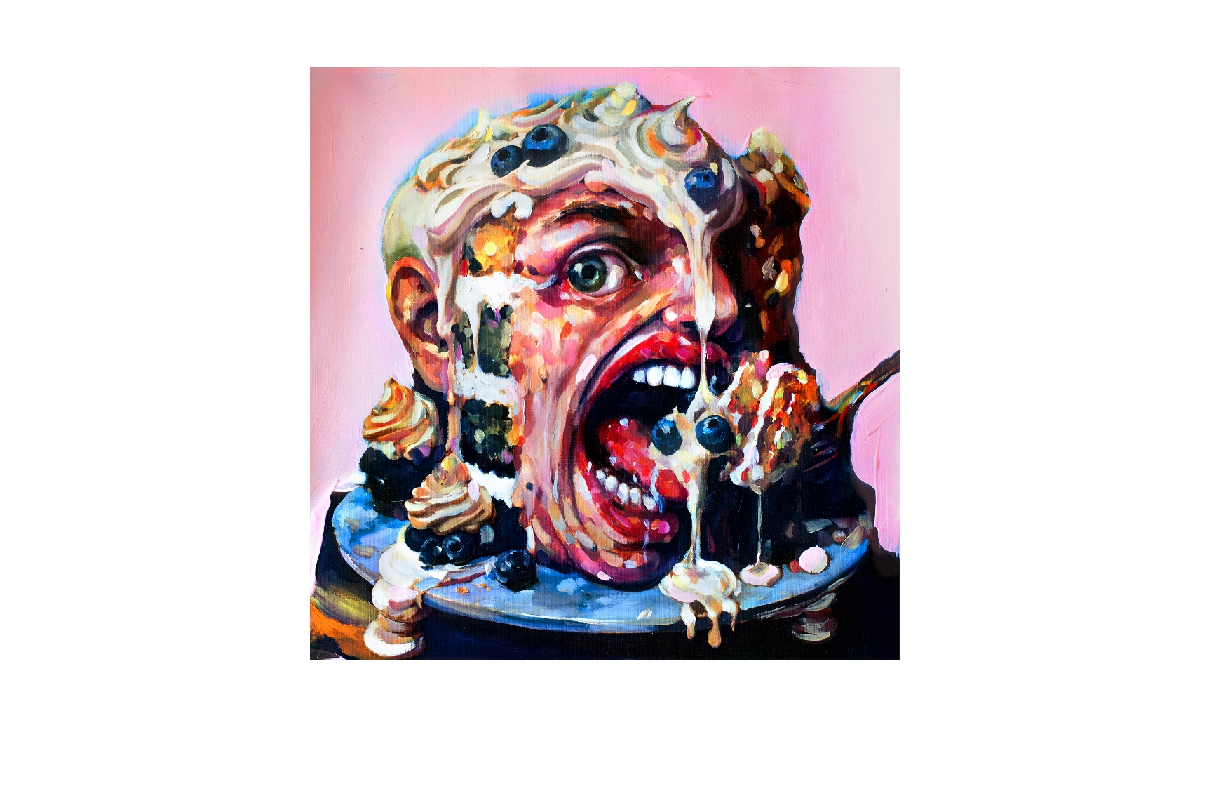 Oyster shell, acrylic on polyurethane, oil paint and epoxy on metal spoon