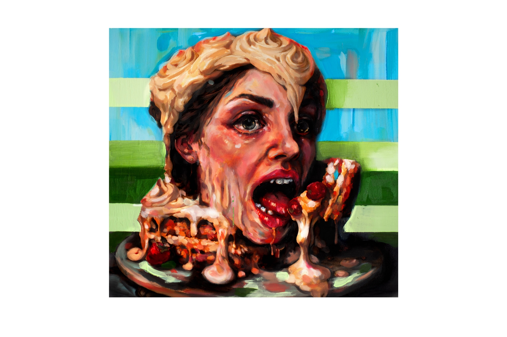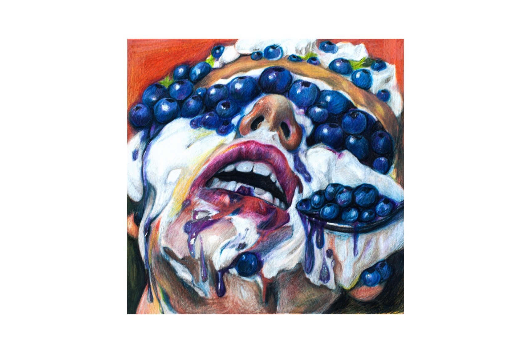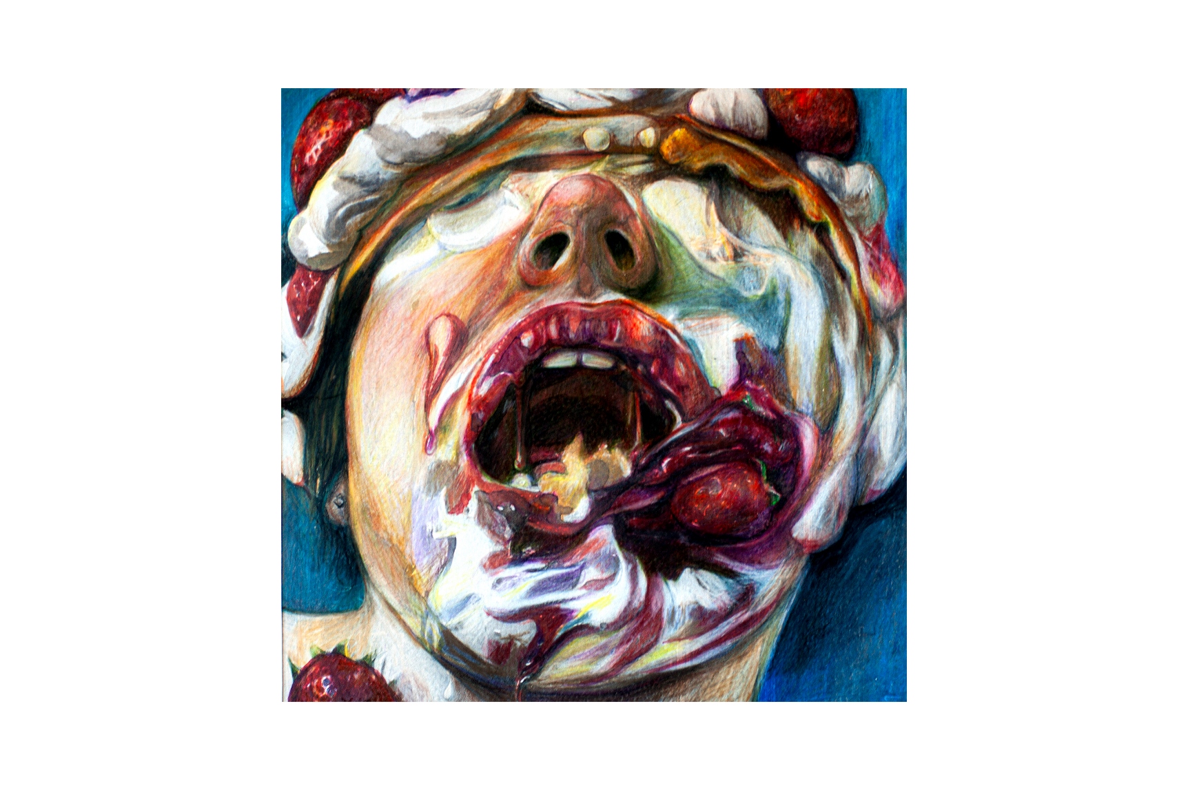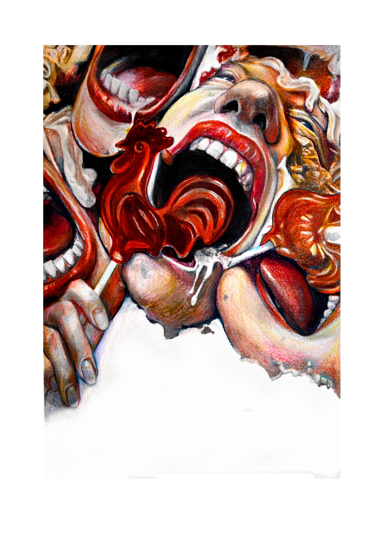 Oyster shell, acrylic on polyurethane, oil paint and epoxy on metal spoon