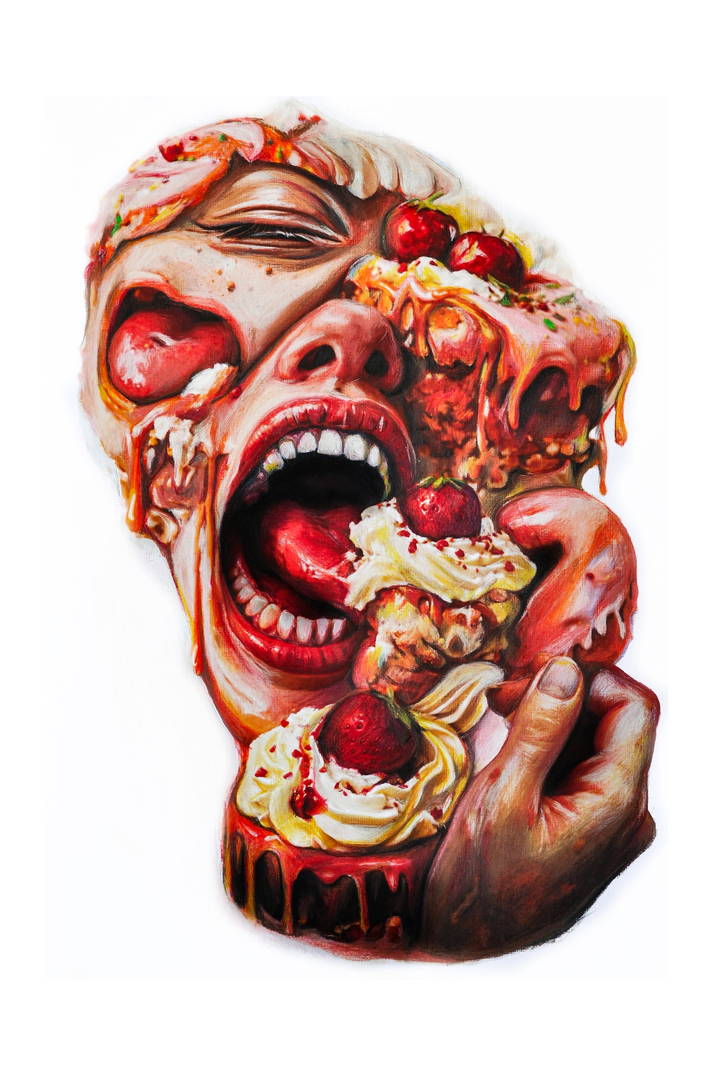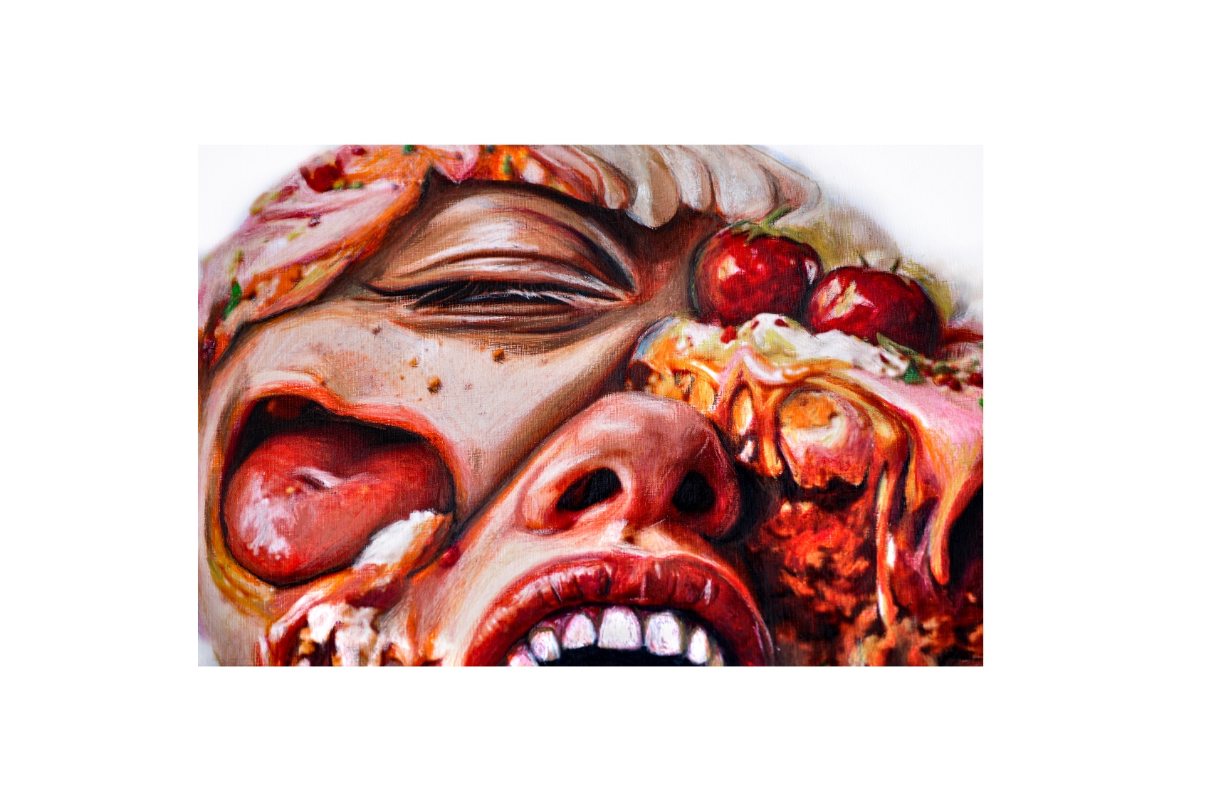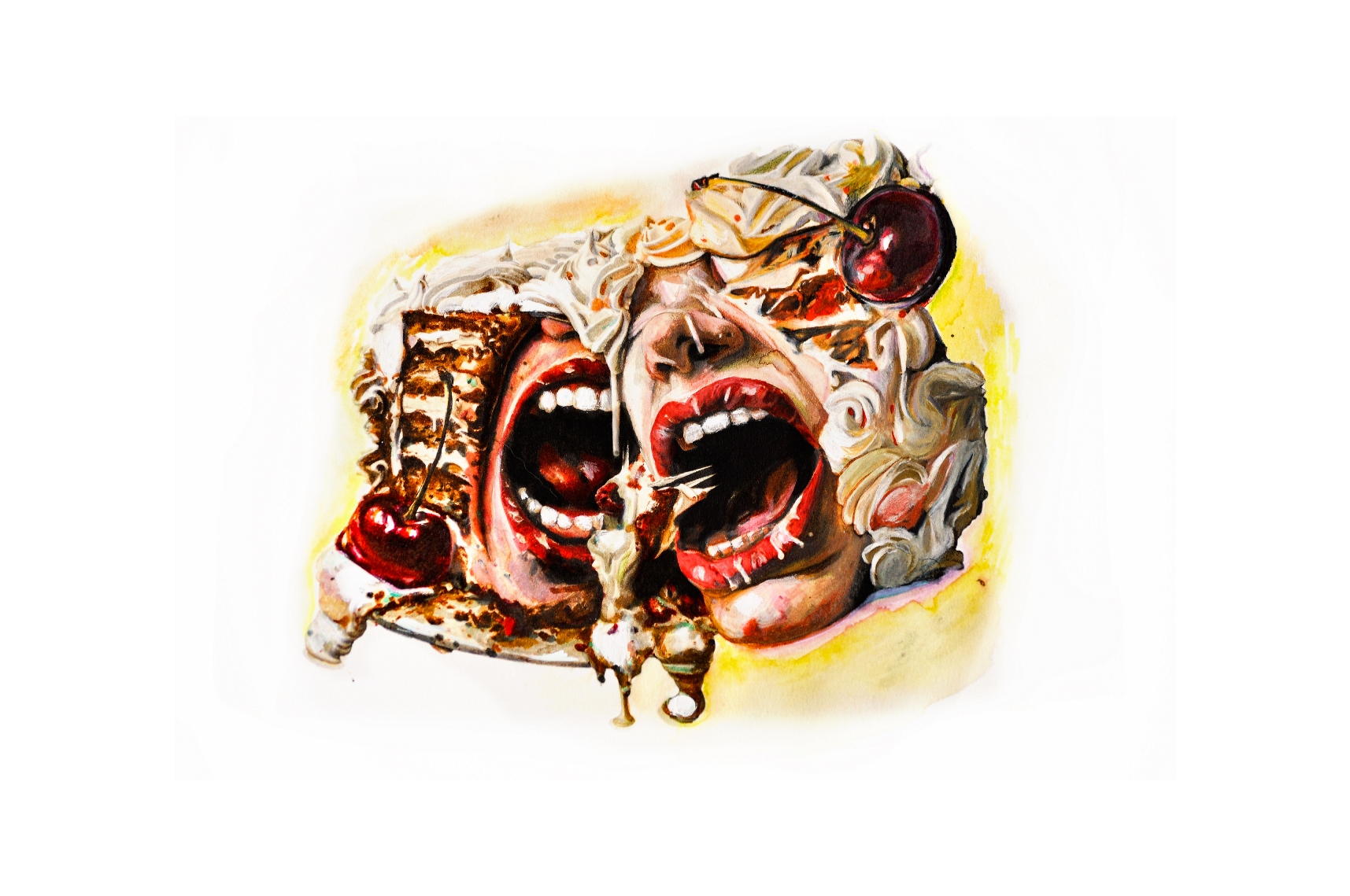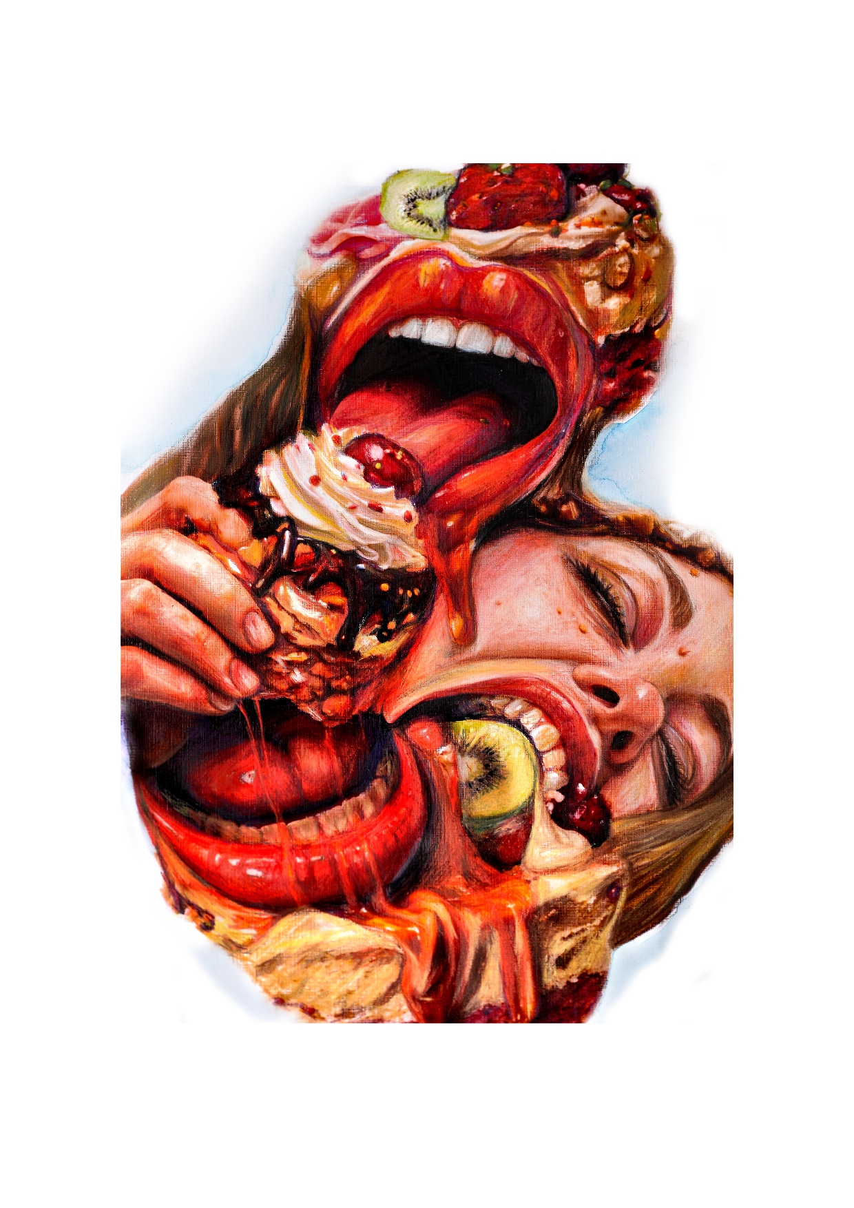 Oyster shell, acrylic on polyurethane, oil paint and epoxy on metal spoon